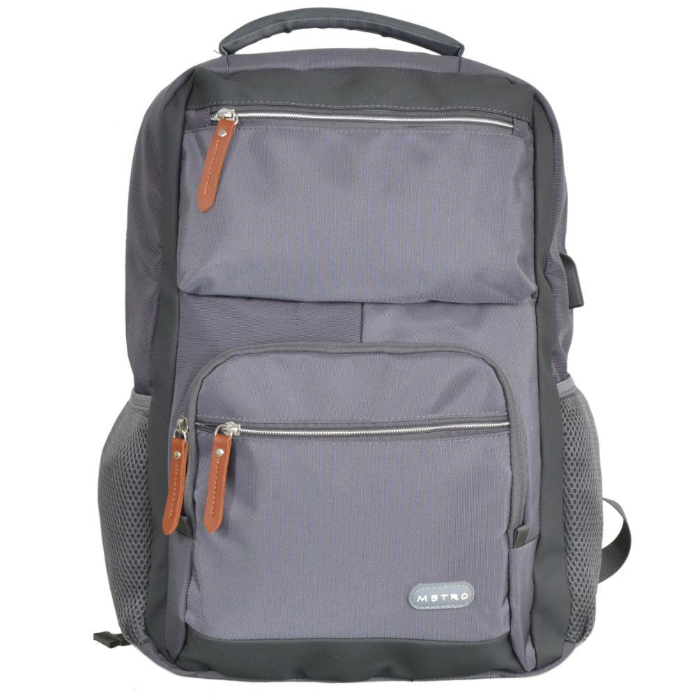 Batoh z kolekce METRO je ideálním batohem pro každodenní použití, nabízí dostatek místa pro knihy, dokumenty (A4) a notebook.Pohodlné nastavitelné ramenní popruhy v kombinaci s polstrovanými zády zajišťují maximální pohodlí při nošení. Batoh má jeden hlavní prostor, na přední straně tři menší kapsy a kapsy na bocích vhodné např. pro láhev, skladací deštník. Uvnitř batohu je polstrovaný úložný prostor pro notebook. Batoh je vybaven speciálním popruhem na zadní straně, díky němuž ho můžete připevnit přes výsuvné madlo kufru.Batoh je vybaven vestavěným USB nabíjecím portem na vnější straně, takže můžete snadno nabíjet svá mobilní zařízení na cestách. Jednoduše vložte svůj vlastní powerpack do vnitřní kapsy (powerpack není součástí dodávky) a pomocí dodaného USB kabelu jej připojte k portu. K nabíjení zařízení pak můžete použít vlastní nabíjecí kabel, aniž byste museli po kapsách tahat těžký powerpack. • materiál: polyester• rozměr: 43 x 34 x 18 cm• objem: 26 l• hmotnost: 0,60 kg• doporučená nosnost 8 kg• polstrovaná kapsa na notebook• nastavitelné polstrované ramenní popruhy• polstrovaná záda